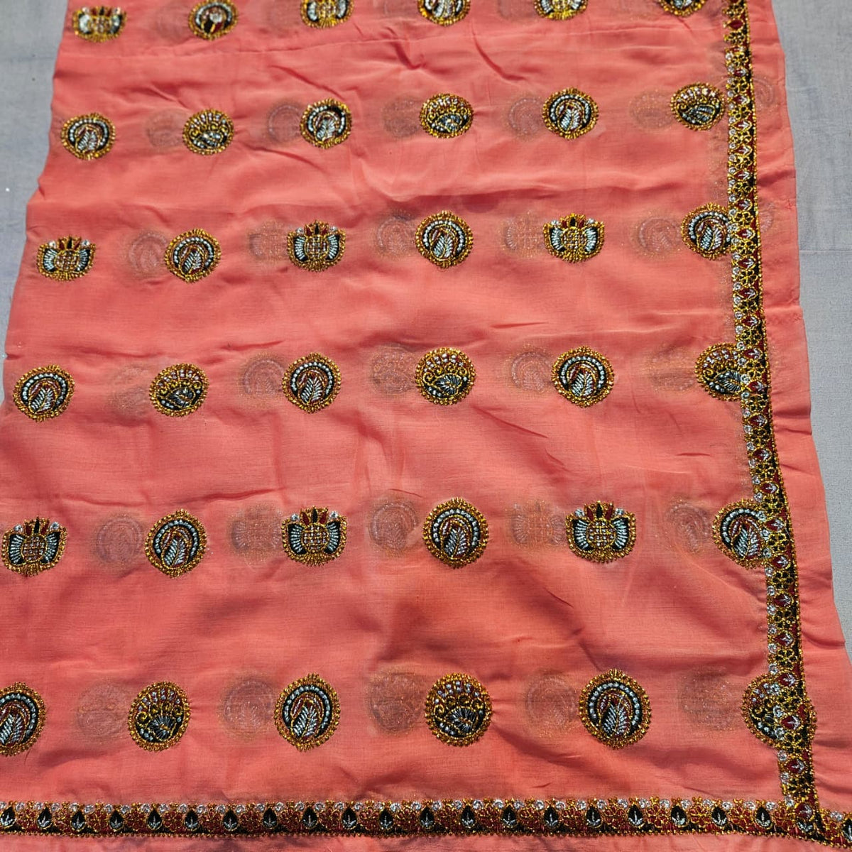 ✅ Elegant Golden Detailing – The dupatta has a beautiful golden border and motifs for a royal look.